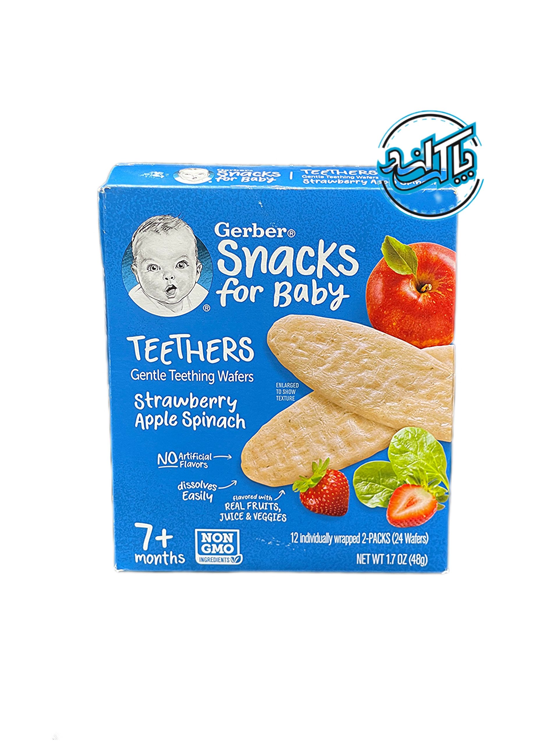 اسنک دندانی نوزاد 7 ماه به بالا گربر با طعم توت فرنگی، سیب و اسفناج Gerber