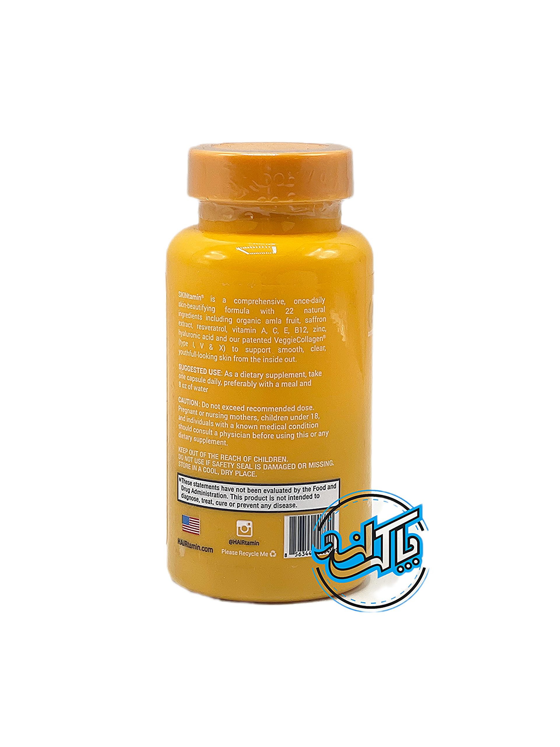 یک مکمل غذایی است که توسط برند هیرتامین (Hairtamin) تولید شده و هدف آن بهبود و حفظ سلامت و زیبایی پوست است. این مکمل حاوی ترکیبات مختلفی از جمله ویتامینها، مواد معدنی، آنتیاکسیدانها و عصارههای گیاهی است که برای حمایت از سلامت پوست مفید هستند.