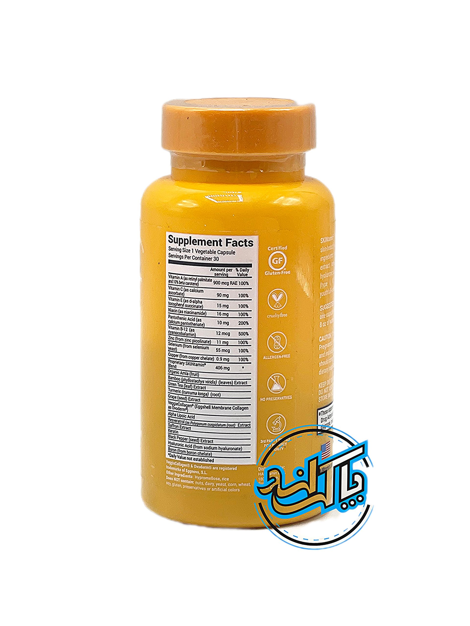 این مکمل حاوی ویتامینهای A، C، E و B12 است که همگی برای سلامت پوست ضروری هستند.