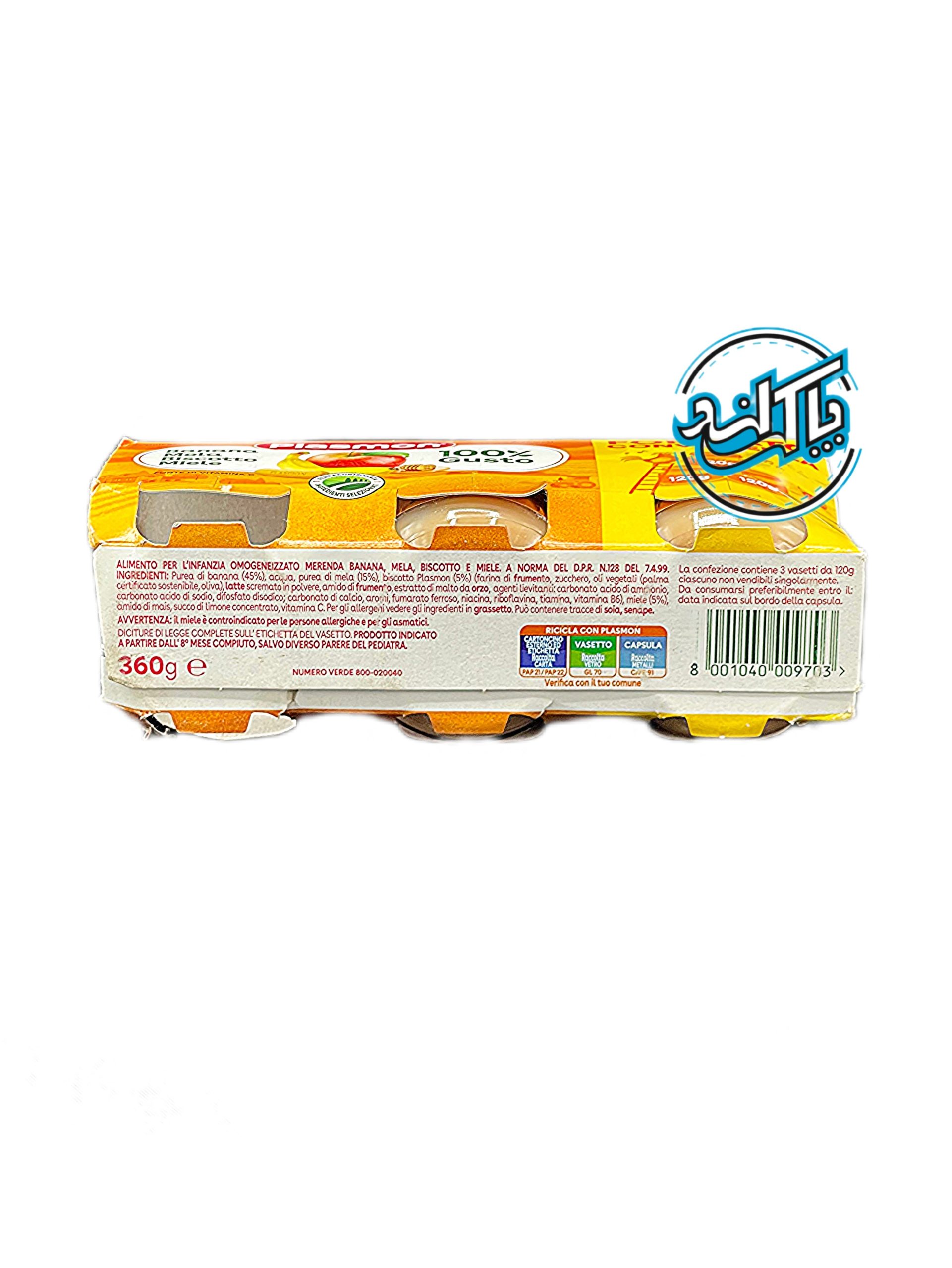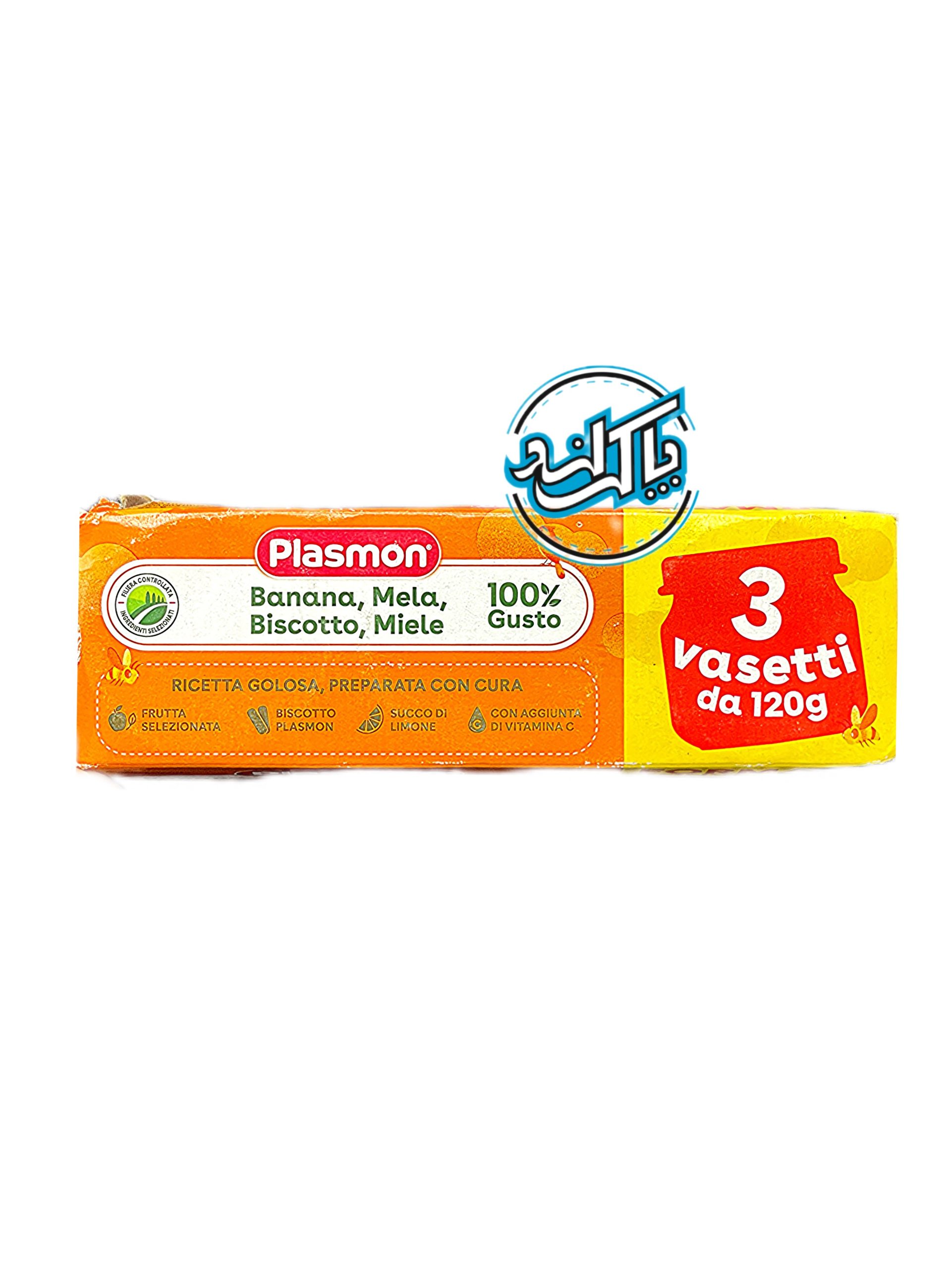 غذای کودک با مخلوط میوه ای با طعم عسل، موز، سیب و بیسکوییت پلاسمون Plasmon
