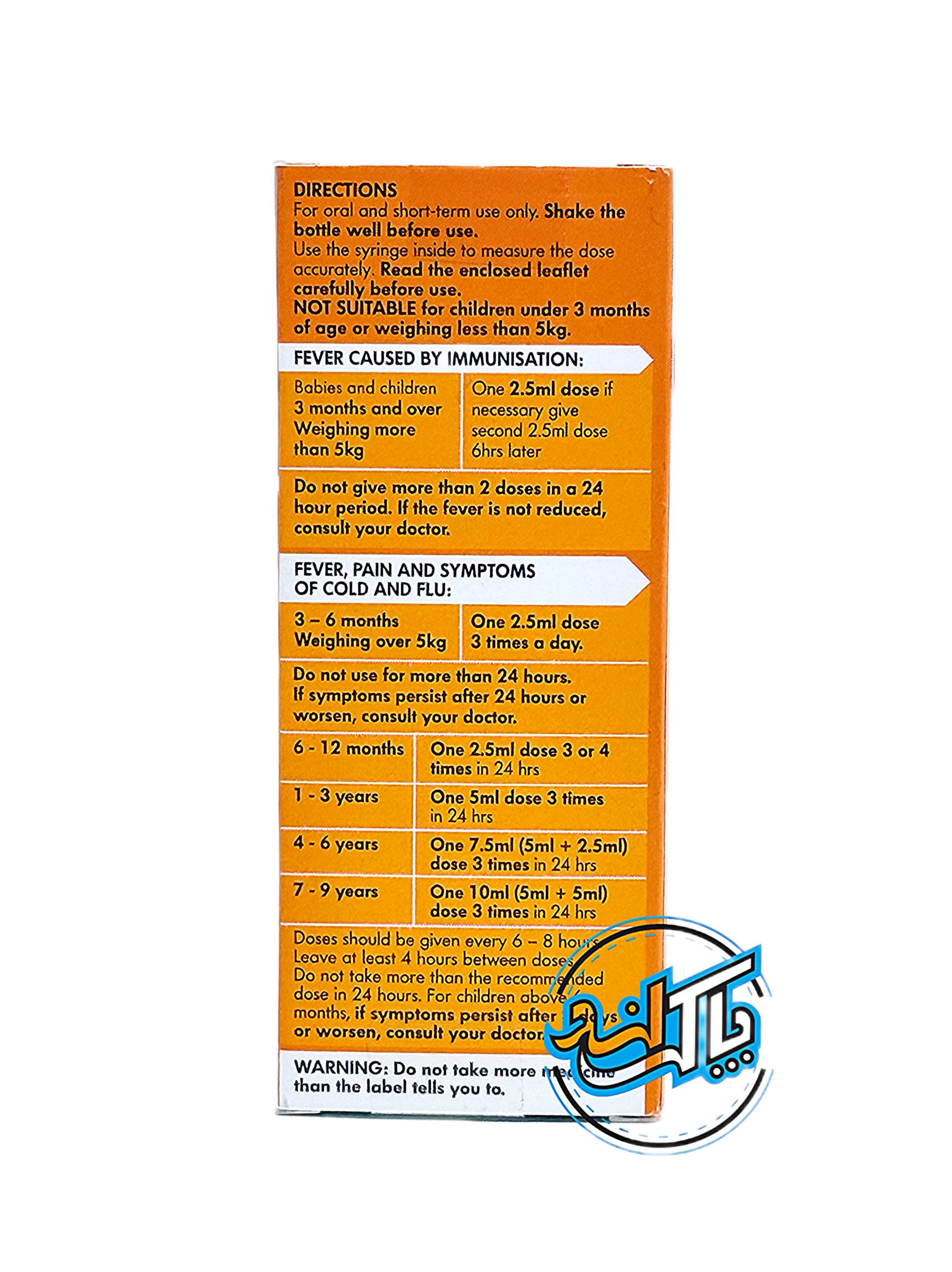 - یک مسکن طراحی شده برای نوزادان و کودکان ۳ ماه و بالاتر و با وزن بیش از ۵ کیلوگرم.