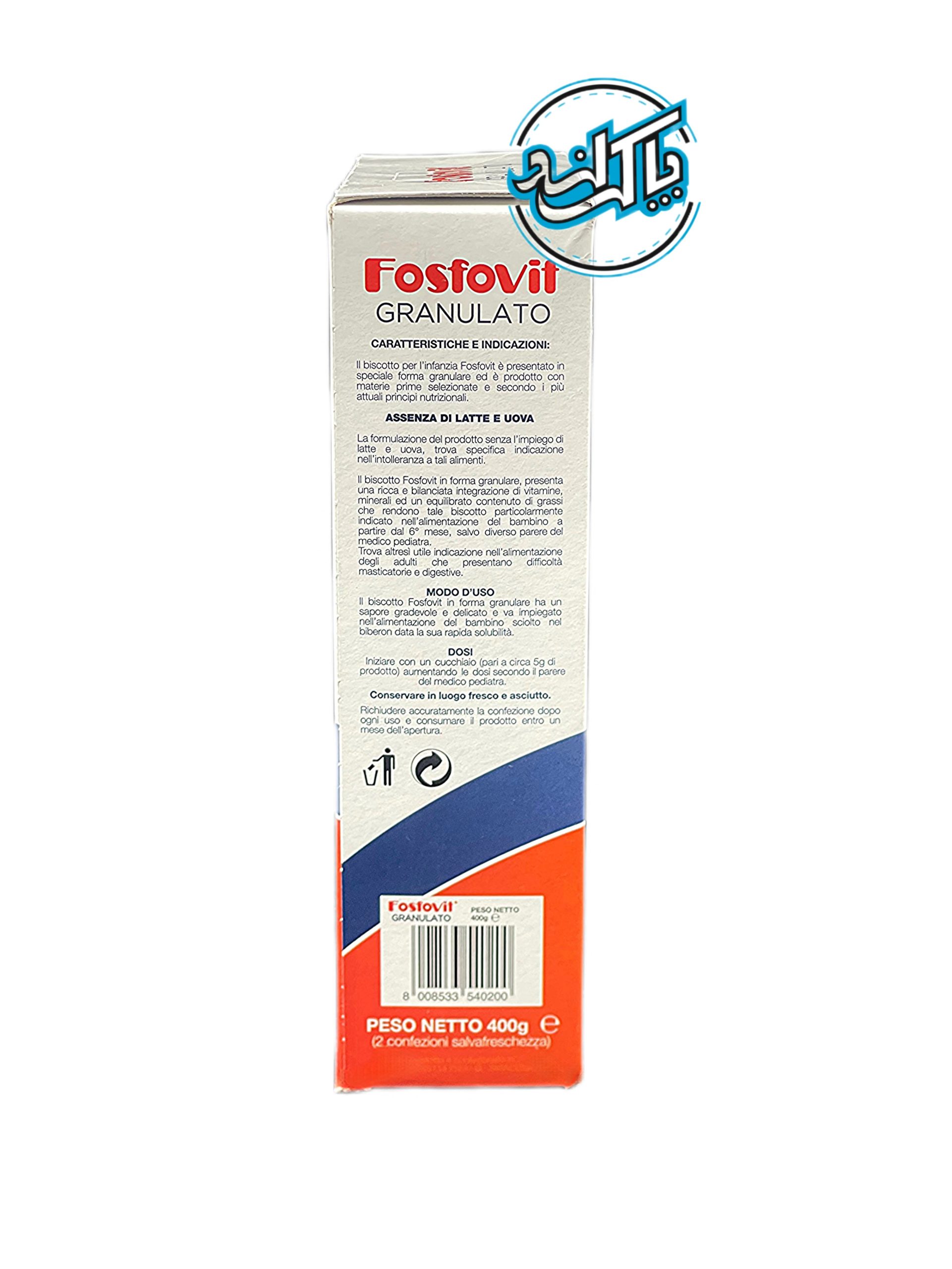 - بیسکویتهای گرانولی فوسفوویت حاوی ترکیبی غنی و متعادل از ویتامینها و مواد معدنی و میزان چربی متعادل هستند که آنها را بهویژه برای نوزادان از ۶ ماهگی مناسب میکند ، مگر اینکه پزشک متخصص اطفال توصیه دیگری داشته باشد.